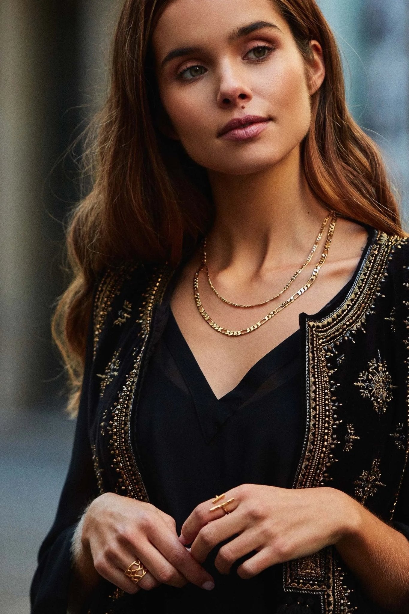 El Collar Maria Choker, chapado en oro para un toque lujoso, es un accesorio sofisticado que añade elegancia a cualquier look.
