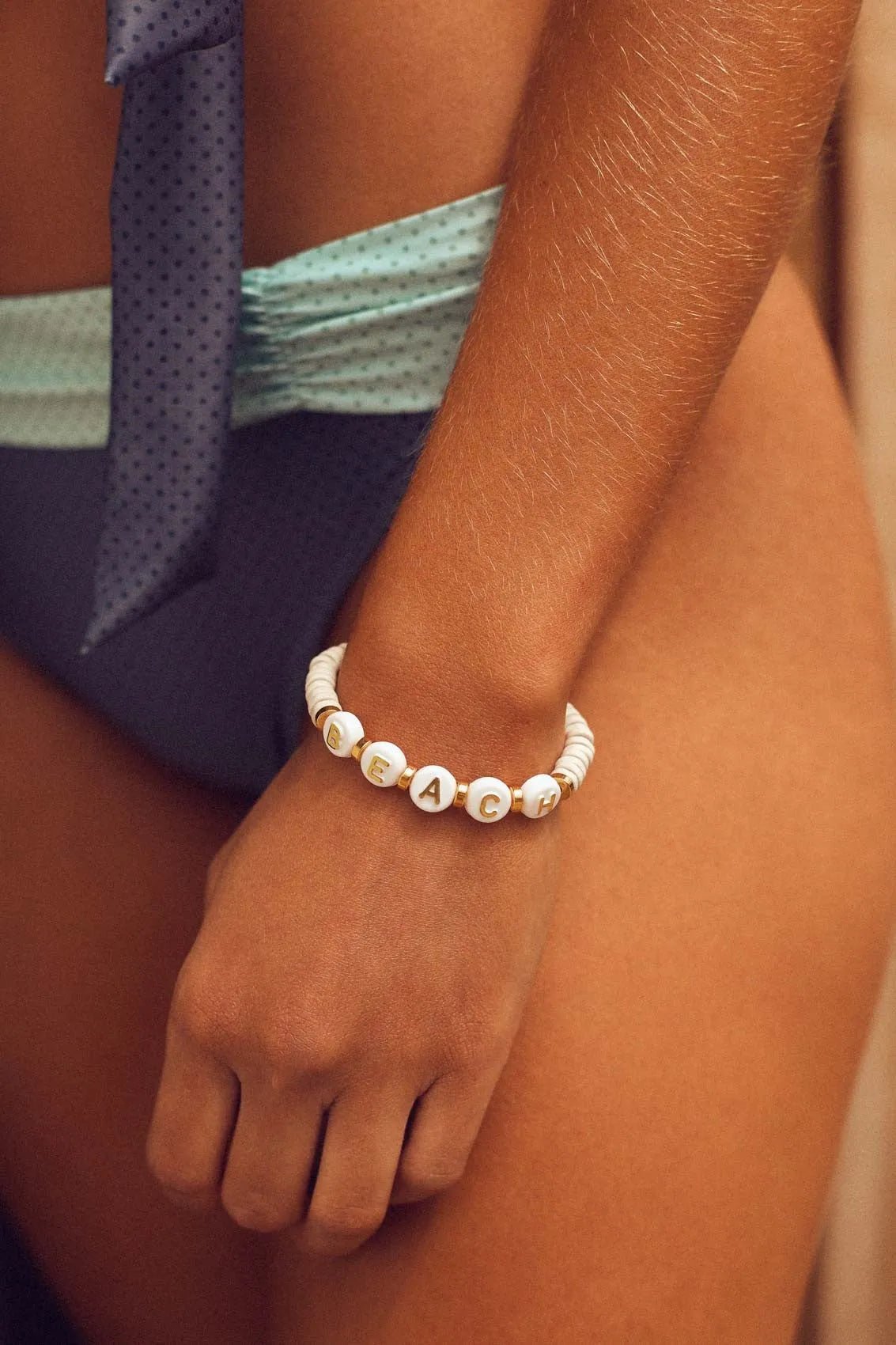 Beach Bracelet made with letters and ceramic beads.