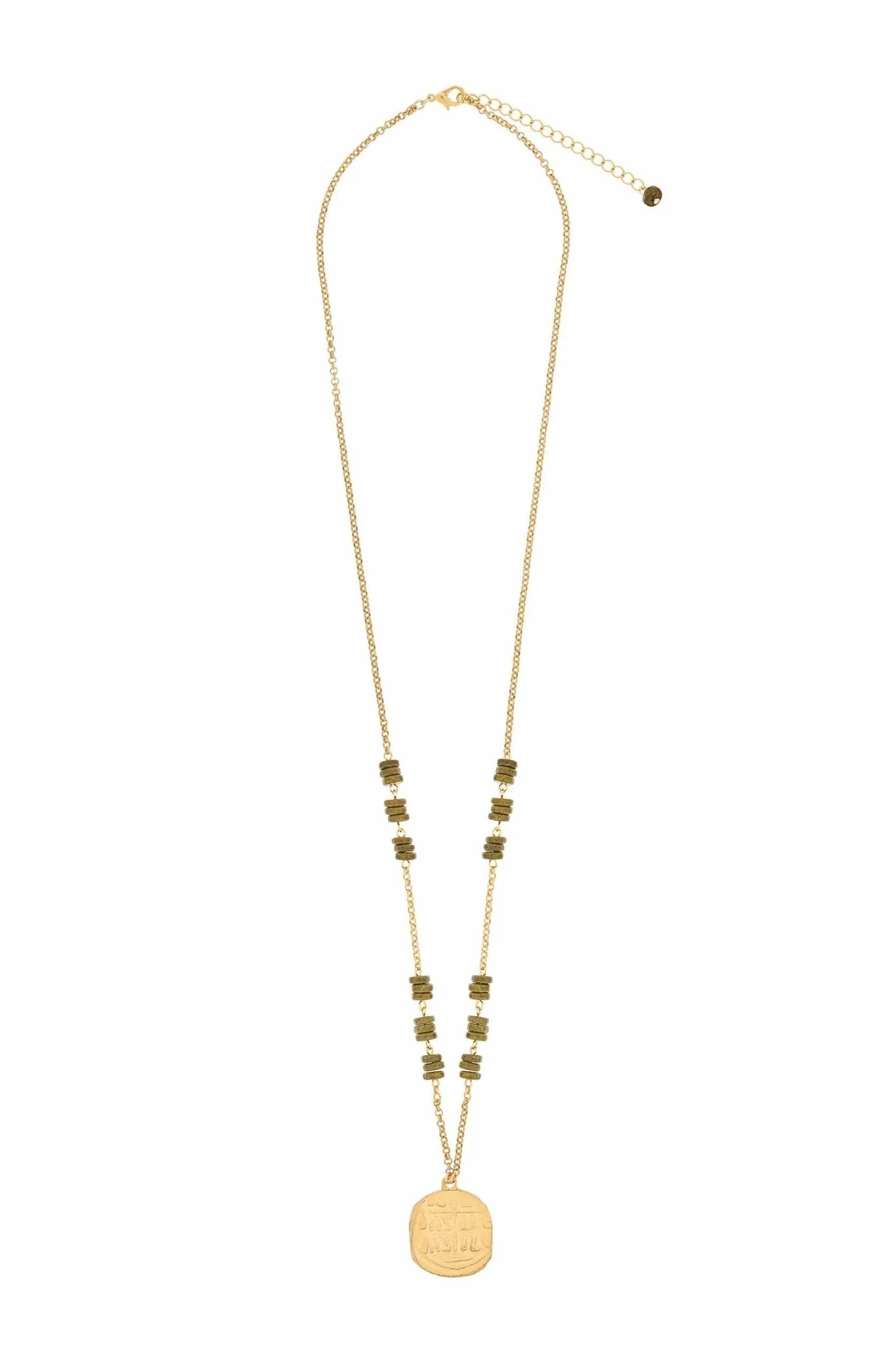 Le collier Heraklion XL incarne la force du style artisanal avec son design audacieux. Pierres naturelles, charme ethnique et plaqué or se réunissent dans une création unique.