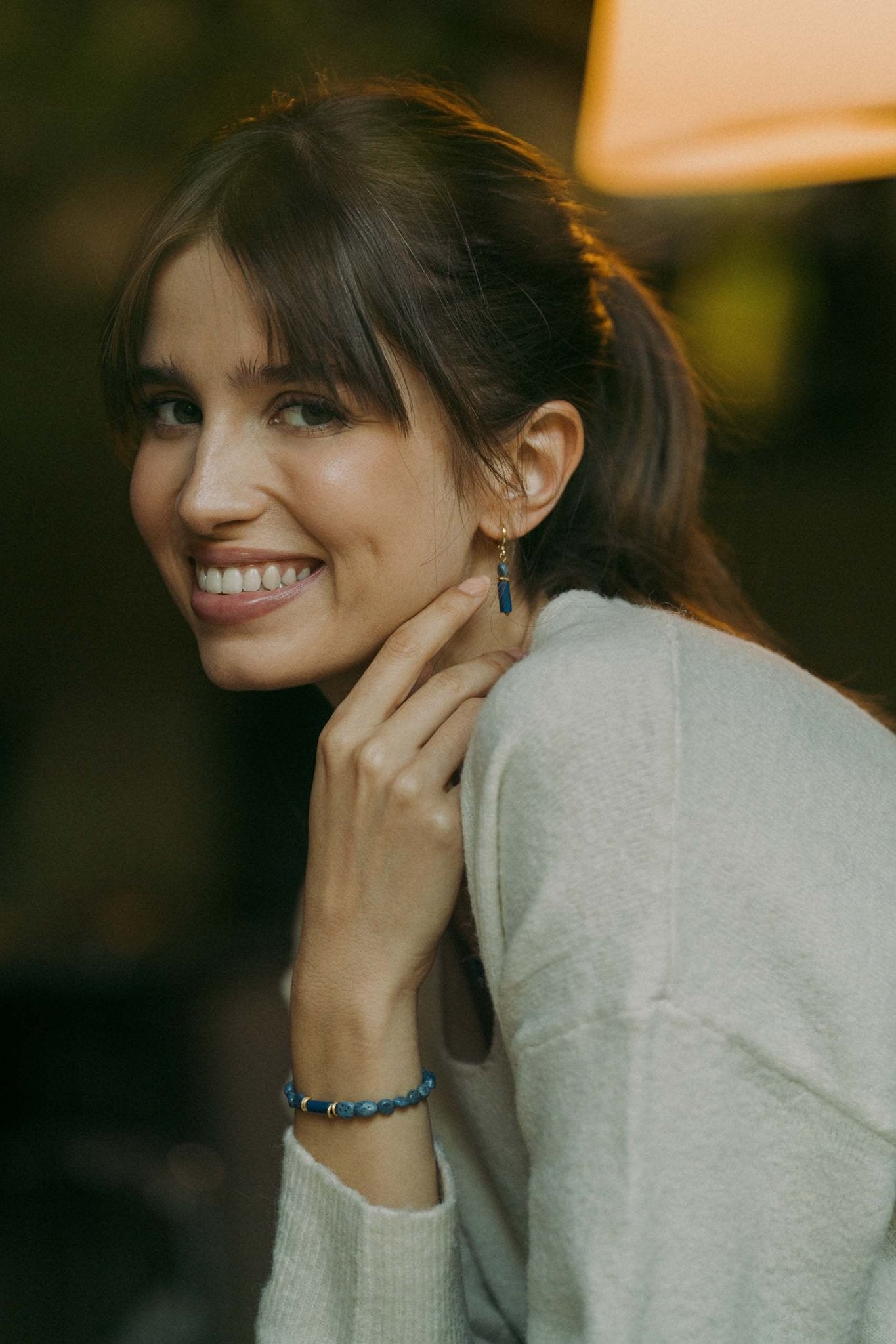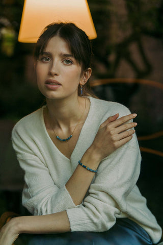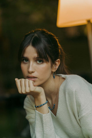 Le Bracelet Serenity associe élégance et polyvalence grâce à ses perles de sodalite vibrantes et ses charms premium plaqués or 24K.