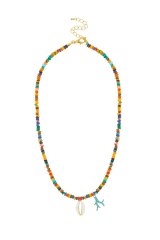 Inspired by coastal beauty and crafted with care, the Arenals Necklace brings effortless charm to your everyday style. Handcrafted in Portugal, it features a refined mix of natural stones and colorful enamel charms, creating a vibrant yet elegant piece for layering or wearing solo.
