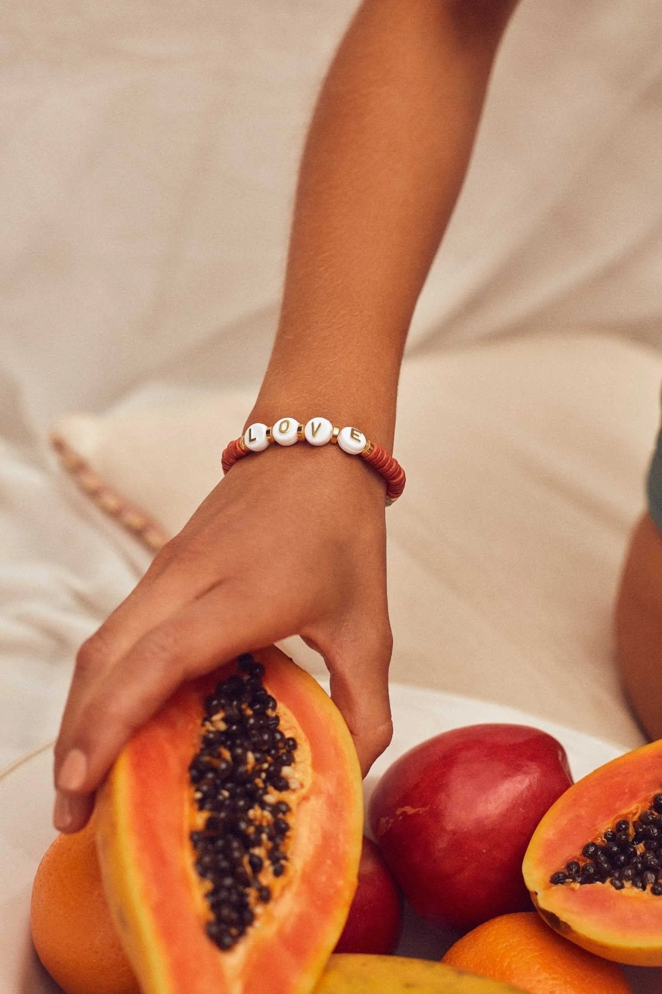 Love Bracelet made with letters and ceramic beads.