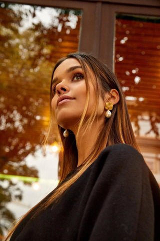 The Pearly Drop Earrings feature luminous freshwater pearls in an elegant drop design. With 24K gold-plated details and handcrafted in Portugal, these earrings offer timeless sophistication with graceful movement.